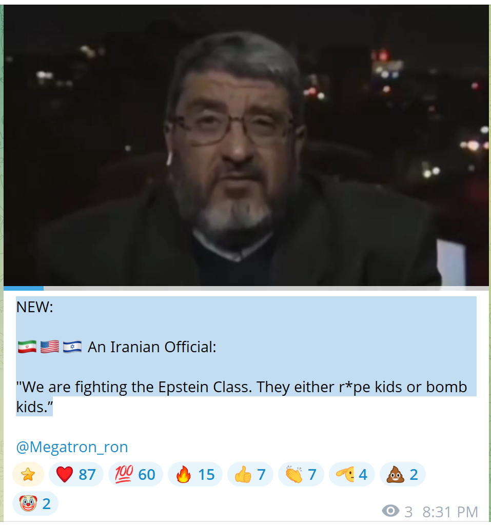 Whats the justification for this war again, Epstein blackmail shit?