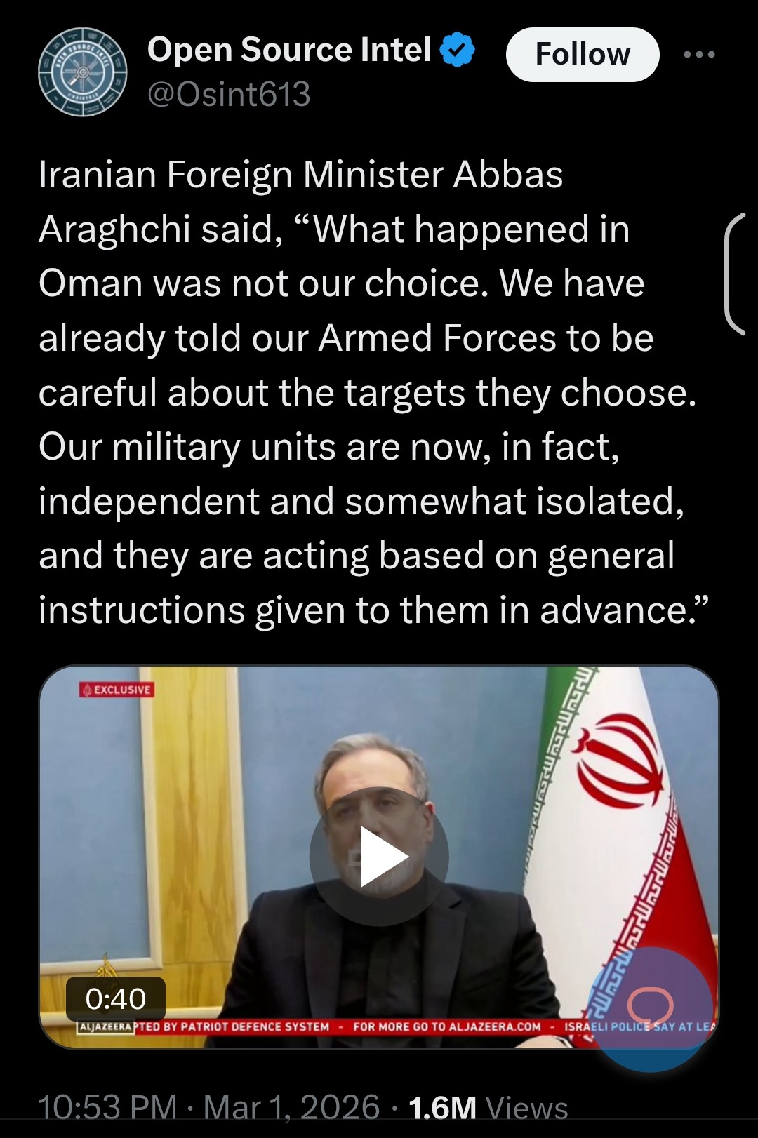 You know it might have been the case if Iran didn't bomb all of it's neighbors.