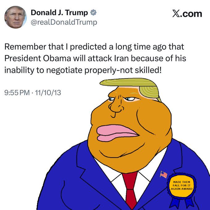 >>529587488“I’m gonna bomb the shit out of them and take the oil” t. 2016 Trump contrasting himself with Obama who was seen as colluding with fellow Muslims by helping Iran with the Nuclear deal