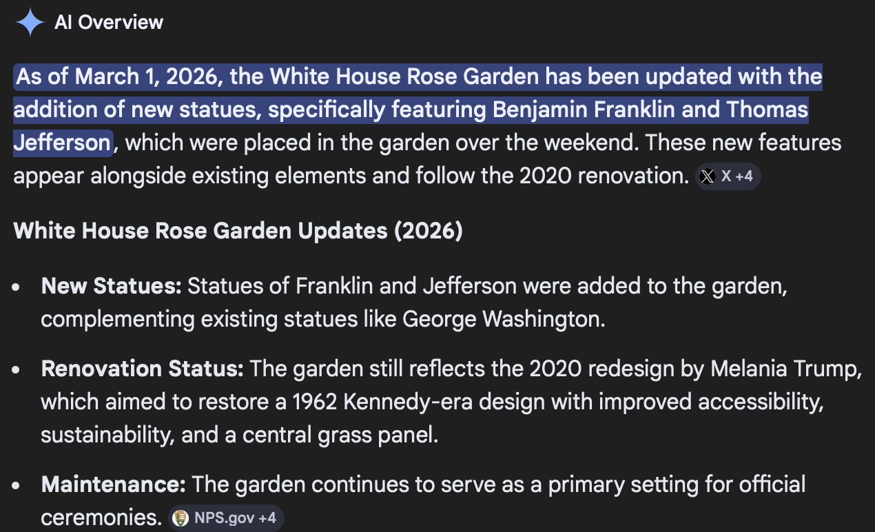 >The President has added statues of Thomas Jefferson and Benjamin Franklin to the Rose GardenThat's cool