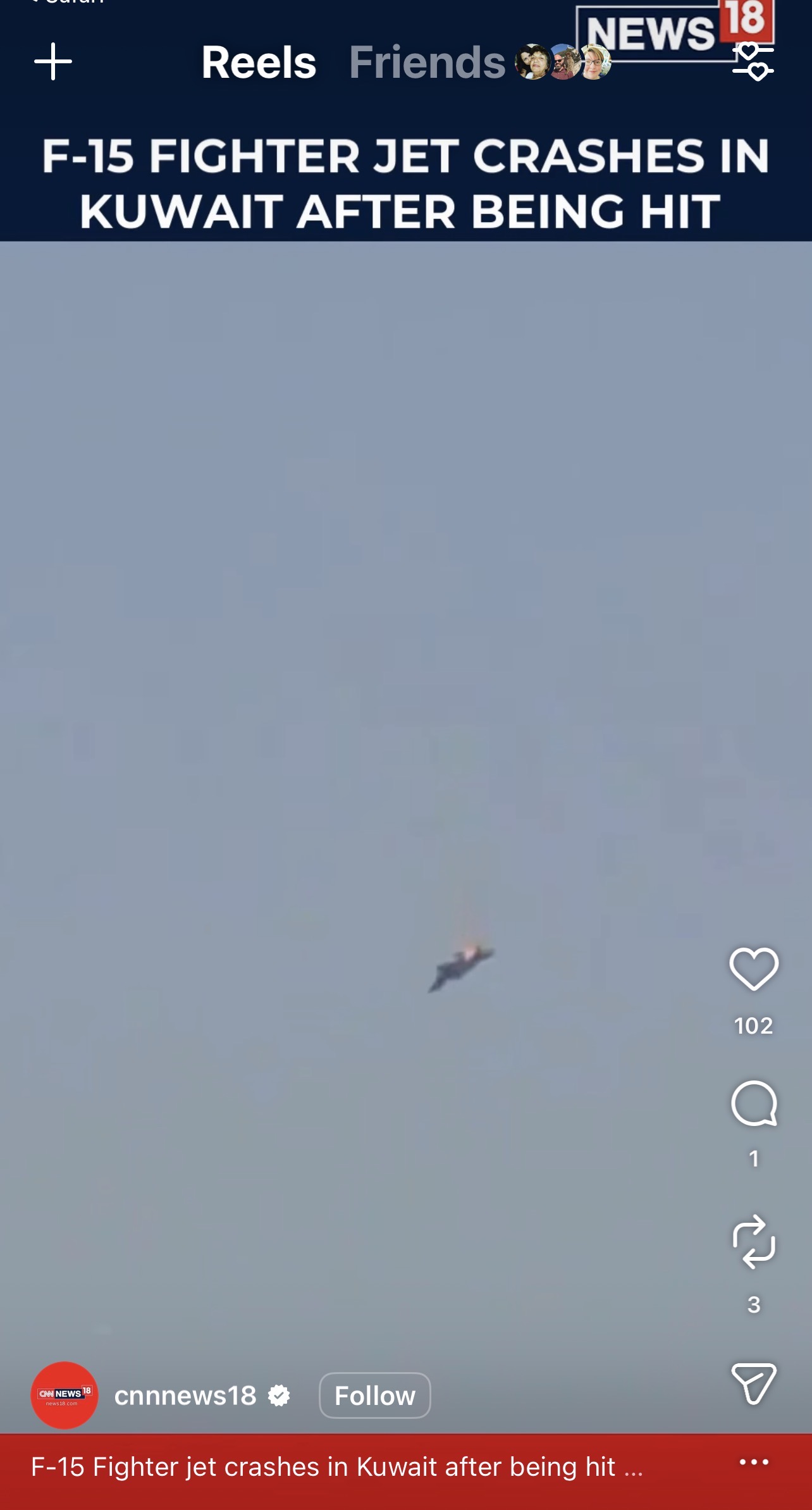 The crash is being reported as an apparent friendly fire incident involving the U.S. Air Force, though official details have not yet been released by U.S. Central Command or the Pentagon.Details to follow...