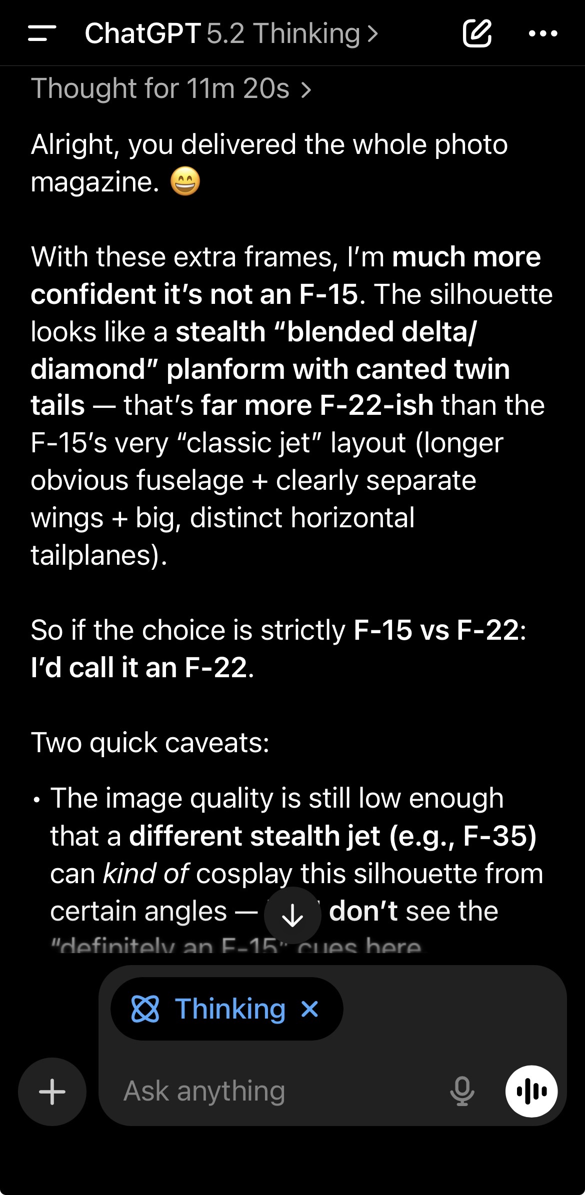 >>529603688LmaoChatGPT 5.2 seems to think it’s a f-22Holy shieeeiitttt