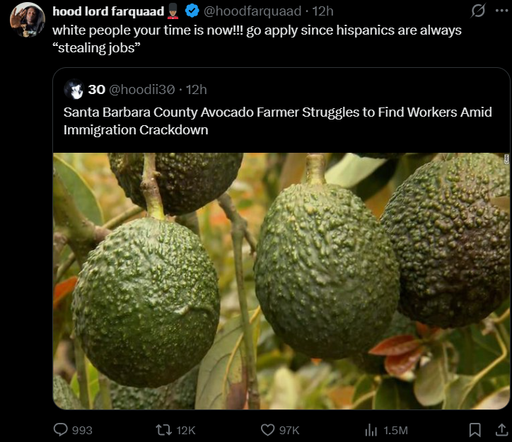 >>529612553I do not care for avocado so I am unconcerned if prices rise due to labor issues.