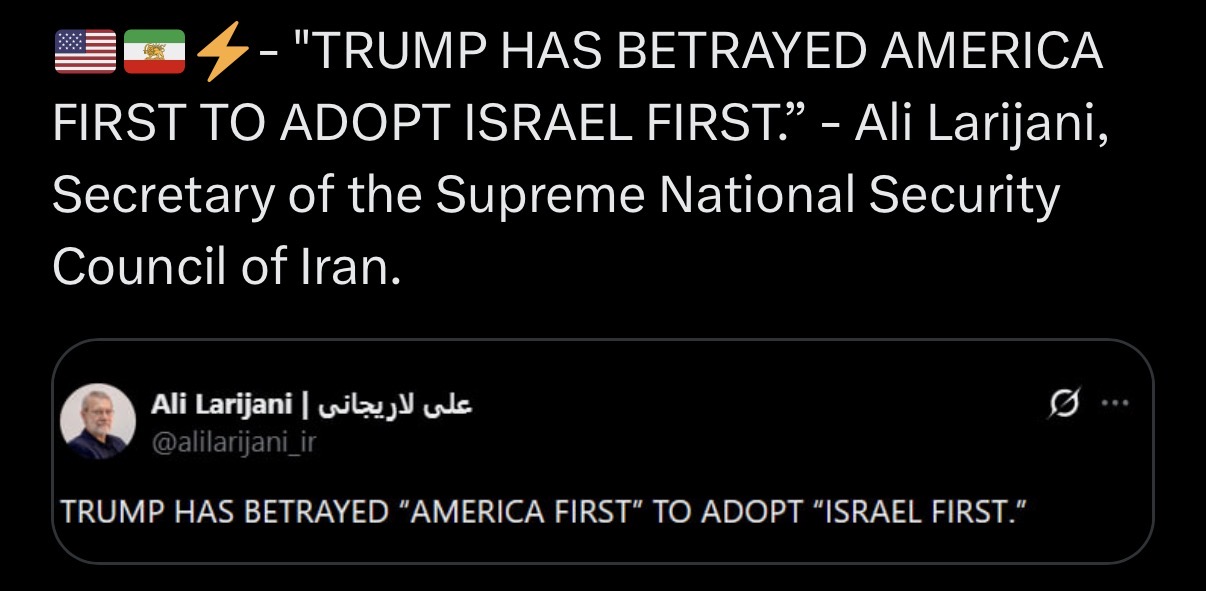 NEW OFFICIAL TWEET FROM THE SUPREME LEADER OF IRAN!https://x.com/alilarijani_ir/status/2028370080908587432>/pol/niggers think Iran has internet.