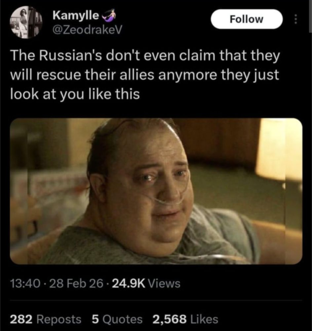 Meanwhile monkey sends over a thousand missiles and drones at Ukraine in almost nightly attacks.