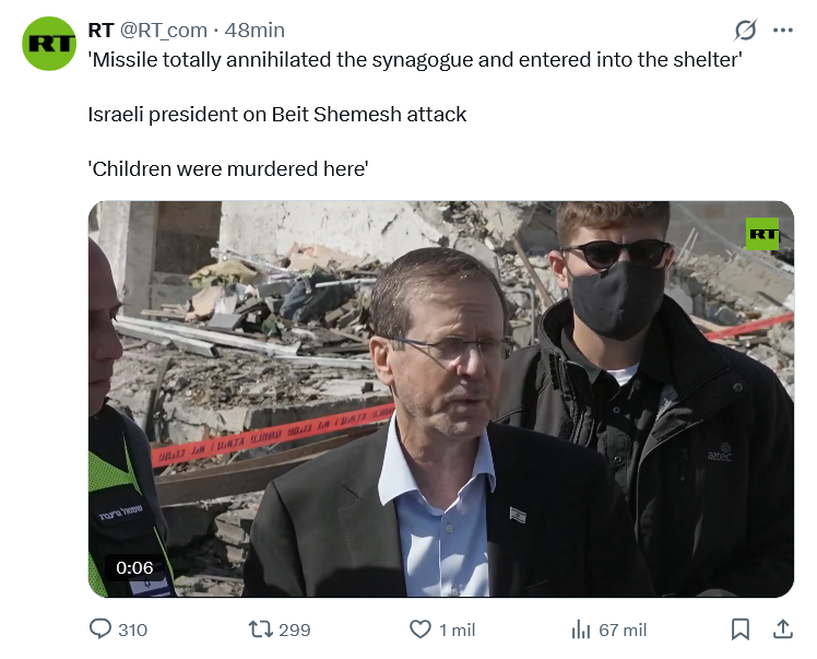>>529615379>IRGC issues a statement saying that the tenth wave of "True Promise 4" was launched, involving the "Kheibar missile" for the first time. The IRGC asks all citizens of Israel to leave the country immediately>The building of the Israeli Ministry of Security, in addition to a building belonging to the intelligence Unit 8200, was subjected to attacks last night.">Explosion in Kuwait just now
