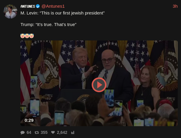 >>529616608>example?People in this thread are-- Minimizing the influence of the jewish lobby-- Minimizing the jewish interest in the war, and saying it's an american war-- Minimizing the fallout and damage this is going to have, which every middle eastern war before has had-- Making excuses, downplaying, basically justifying the war.You are the reason we are getting fucked in the ass with Middle East wars for the past 35 years>i predicted Trump would be unpredictableIt's not unpredictable, he just does whatever Netanyahu tells him. It's like a programmed robot. That's how Nick Fuentes predicted the Iran war the moment Trump got elected. How did he know?