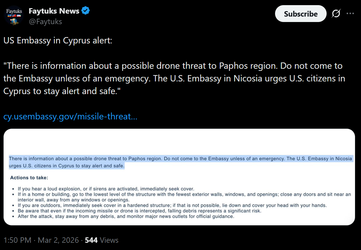 >Iranian drones strike U.K.'s airbase RAF Aktoriri in Cyprus