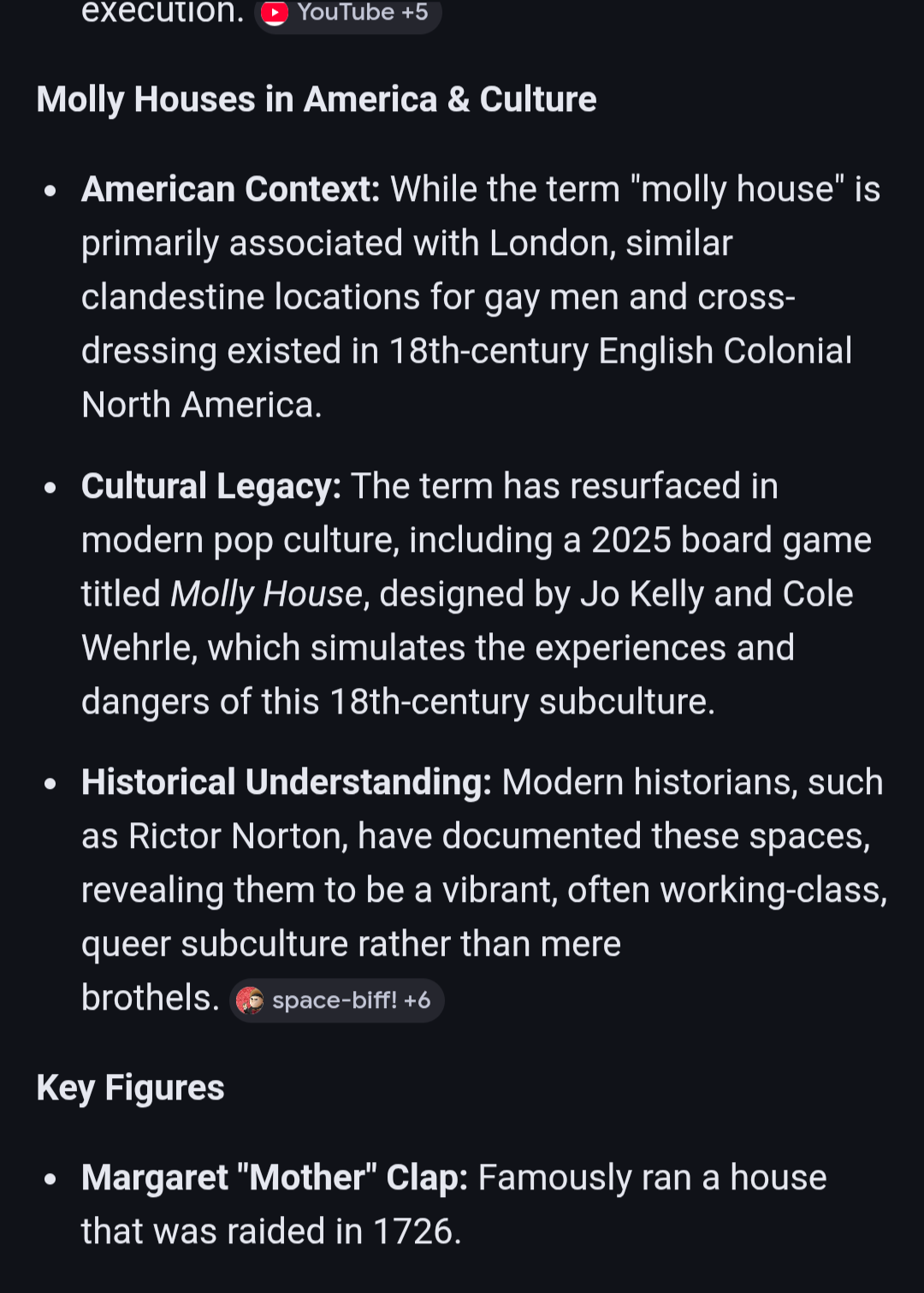 >Jewish culture uses the Purim holiday (specifically Purim shpiels) for cross-dressing, which allows for exploring gender and identity, mirroring the performative aspects found in molly houses.