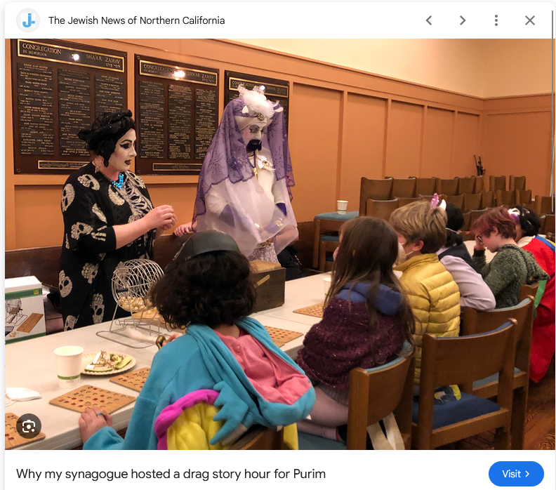 >They read aloud from “The Purim Superhero,” a book banned last year by a Florida school district because the main character has two dads, and “If You’re a Drag Queen and You Know It.”