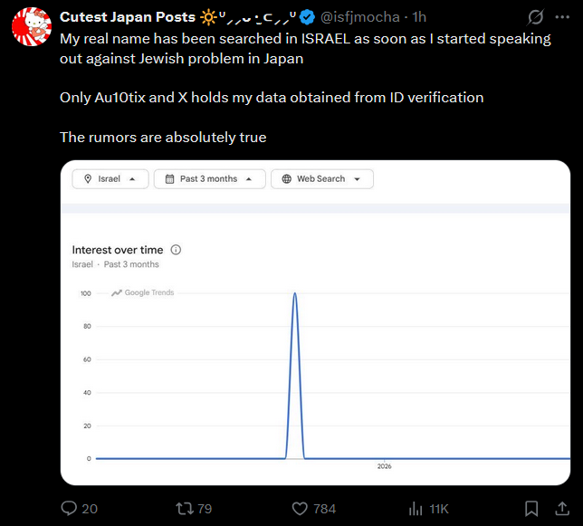 >>529625747It's right there, nigger. >As soon as I spoke out about jews jewing Japan, my name was searched massively in israel, even though it's not public knowledge.How hard is it to understand?