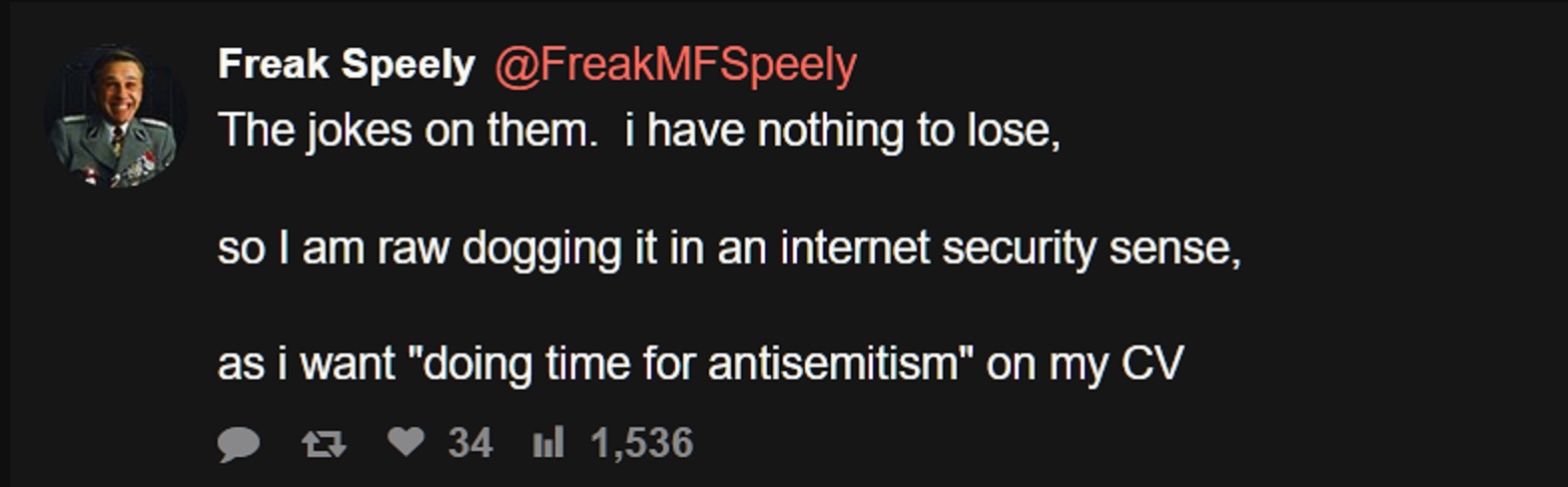 >>529625642I shit post on xtter, as well as on here obviously. The Palantir jew is well aware I'm a right wing crank and antisemite. Like I actually give two shits. HEIL HITLER