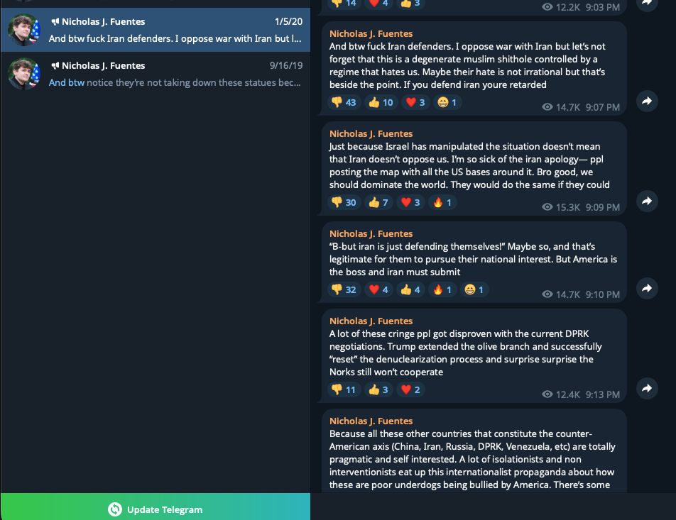 >>529627678Fuentes is obviously controlled opp. He couldn't have just been astroturfed overnight into the mainstream like 6-8 months ago without some kind of sus activity behind the scenes.Also, he is literally a closet gay. Actually not even closet anymore. He is literally rich and famous but yet still not in a relationship at 27. Hmmm....