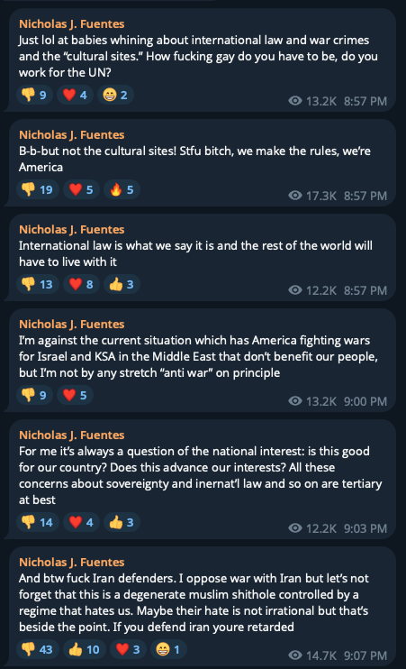 >>529627678That’s not a flip. Quote Nick where he has ever once said Iran’s interest should come before American interests.>>529627771>>529627820Both wrong.>>529627879He was always popular. He stopped being censored on X and his popularity has been growing.You aren’t in the know because you’re a millennial.