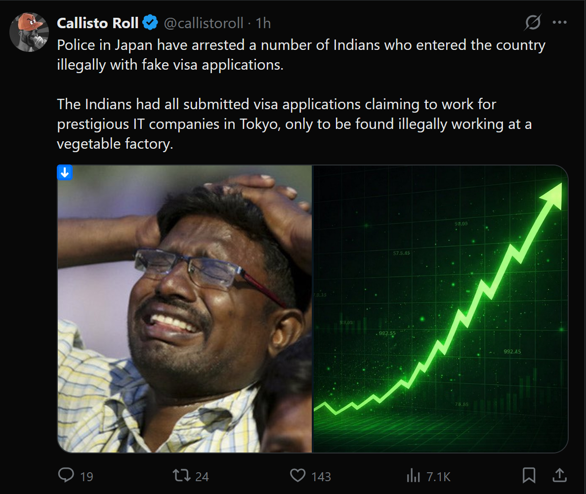 >>529634804>>529634819>>529634924Japan is going to open the country for 3 million+ foreigners on April 2027, they already have the entire program delineated, I expect much more fraud cases popping up from jeets and Southeast Asians in general.Personally I know who is at fault but it has become verboten to speak about them without getting airstriked.