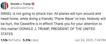 >There is nothing more important than PEACE -Statement from the white house>Bombs iran 9 days later