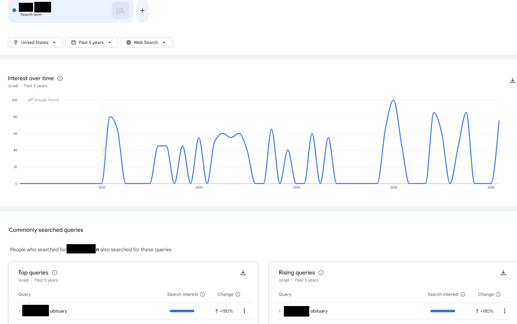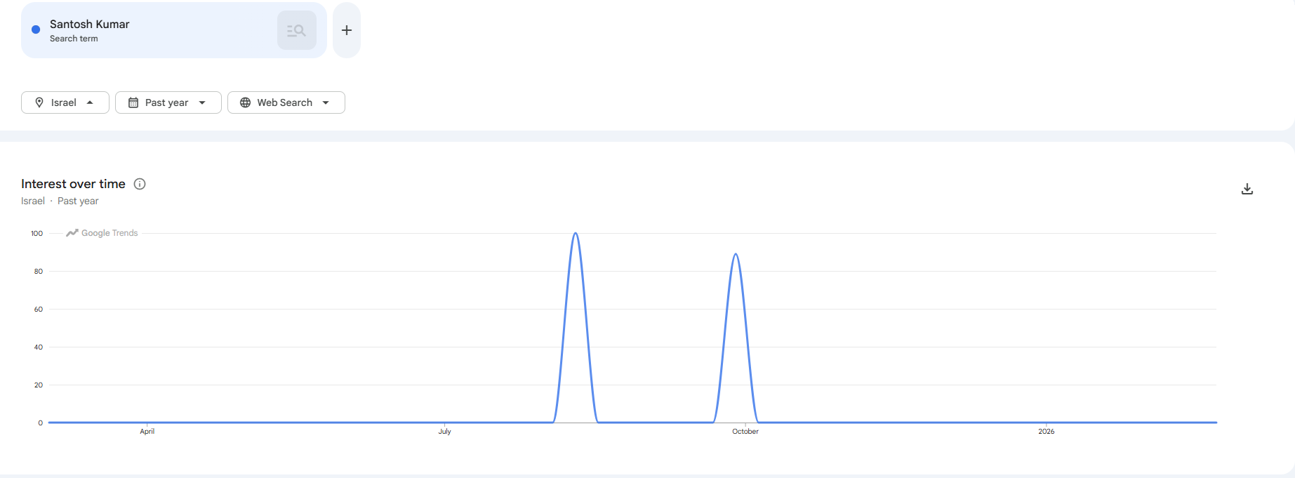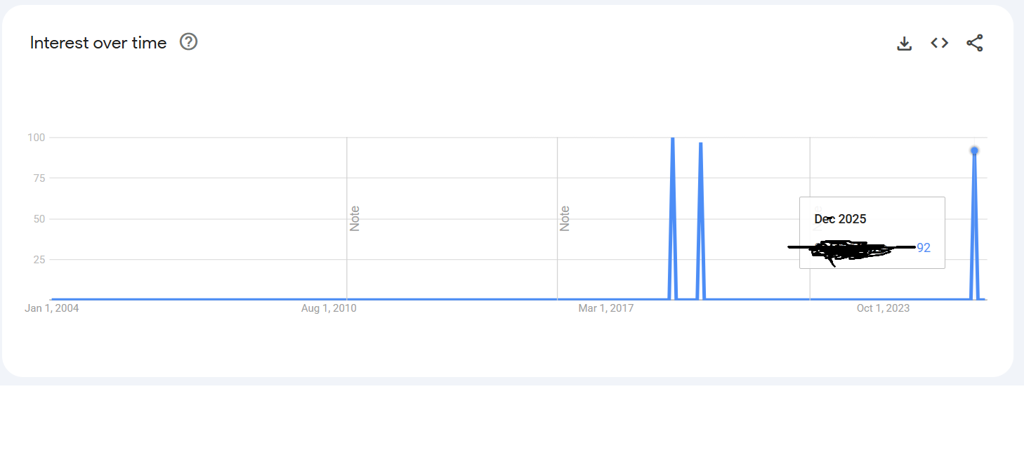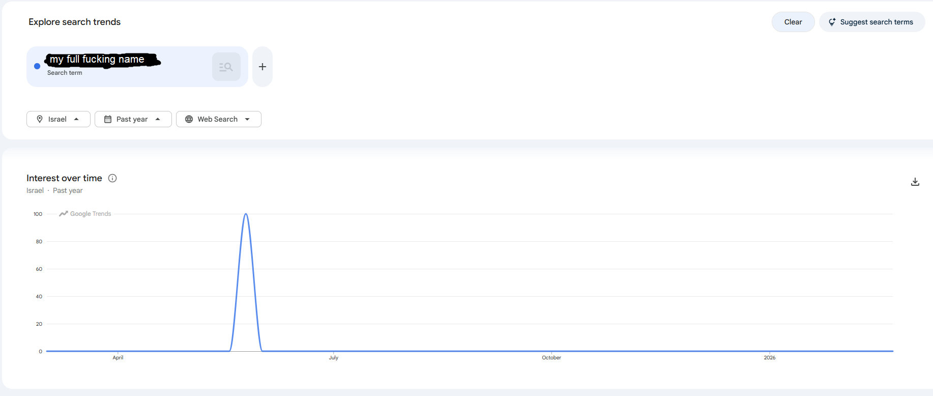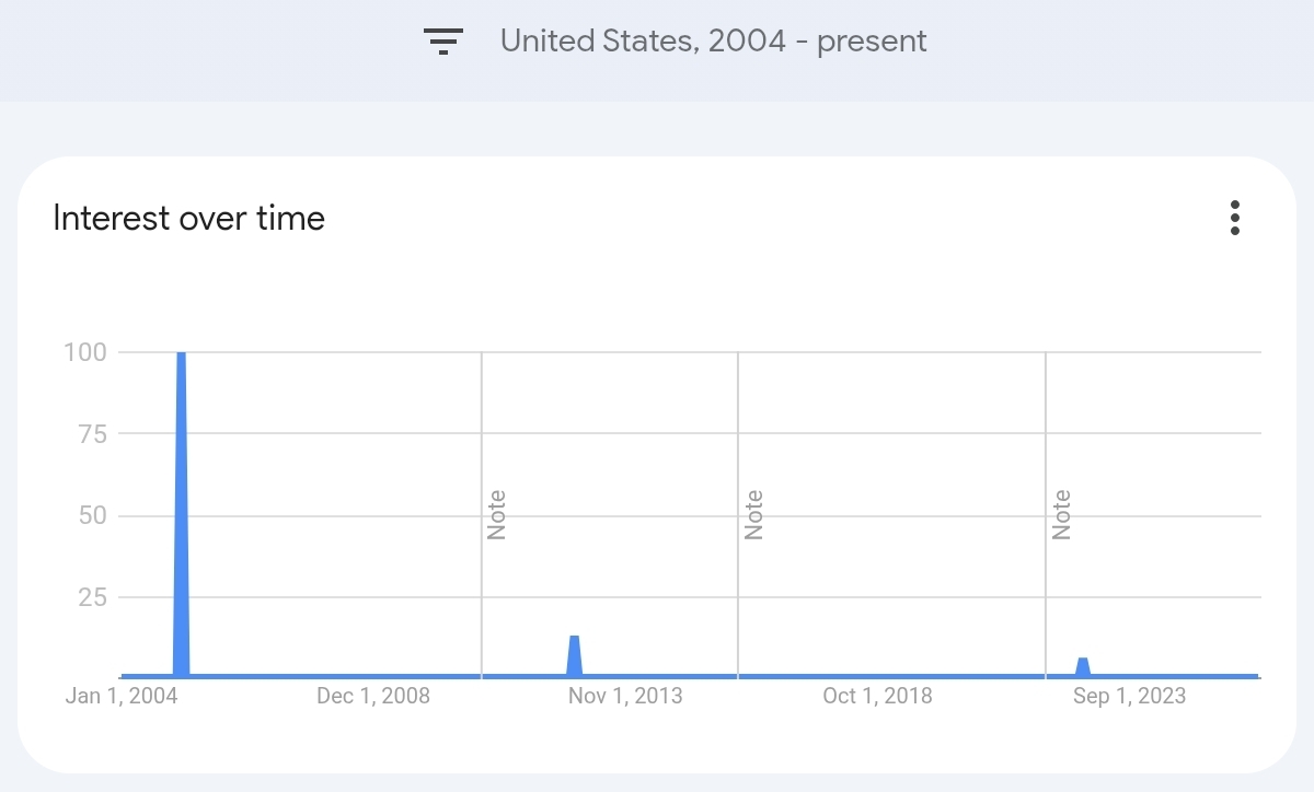 Something fucky is going on on my end, I searched my name and had 2 spikes in 2008 and 2022. I closed out the tab and wanted to look again, now it's giving me this