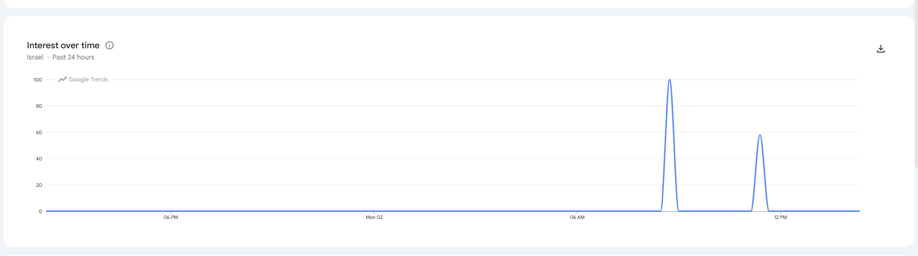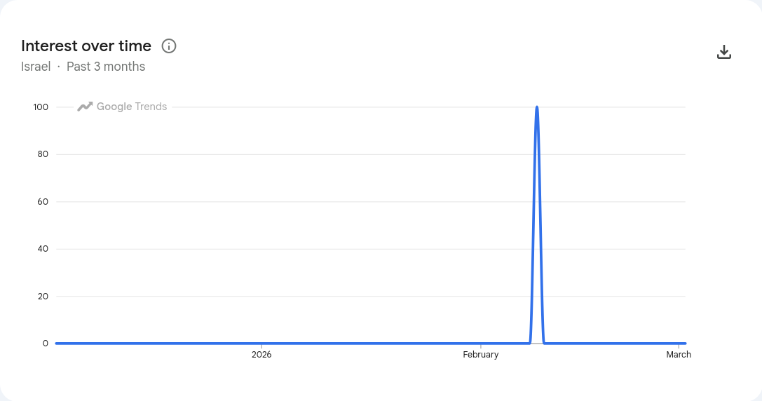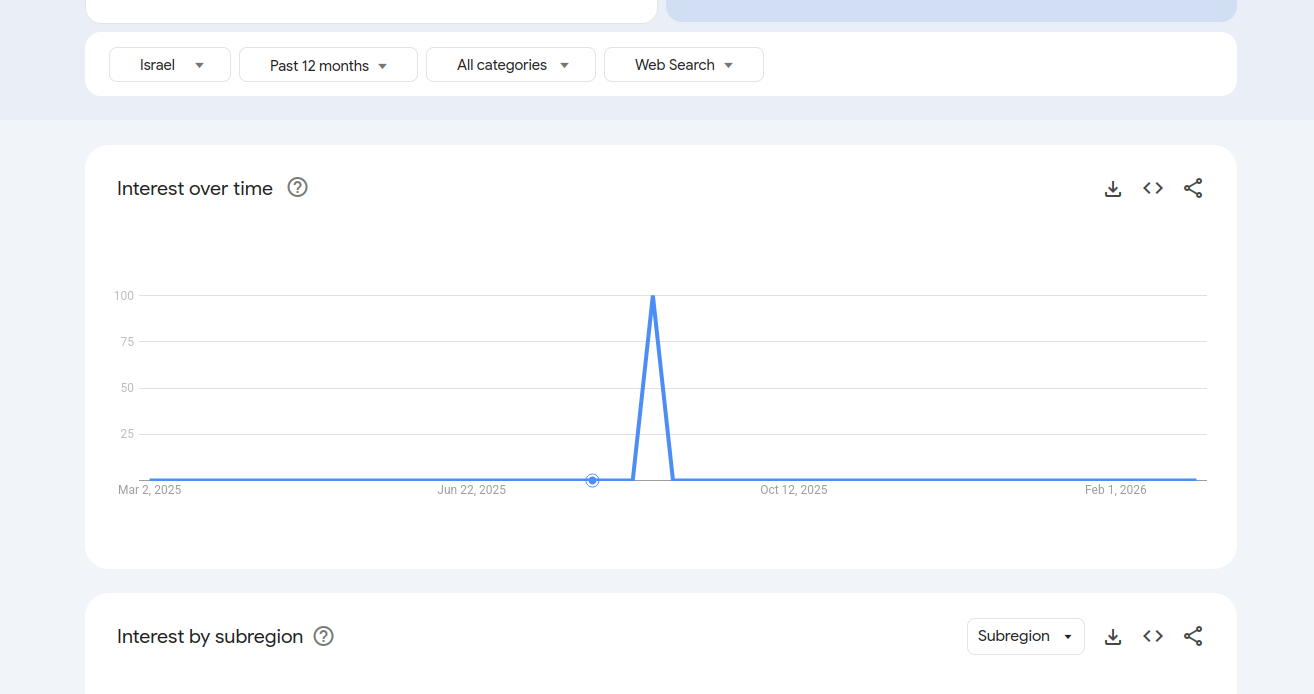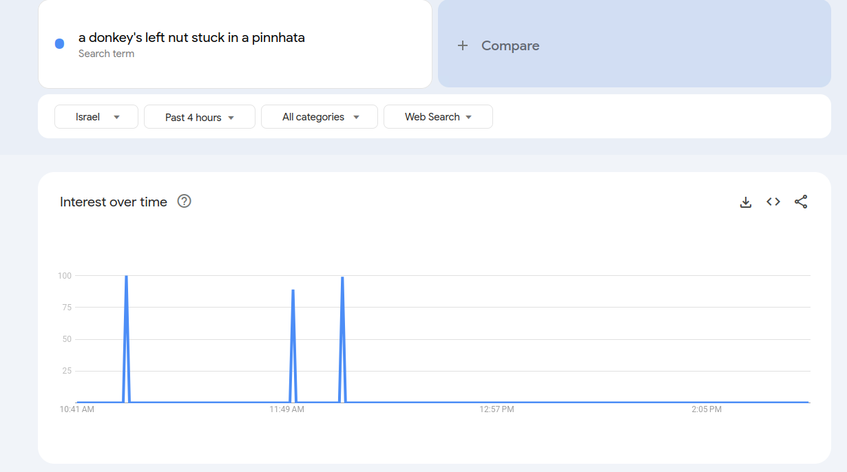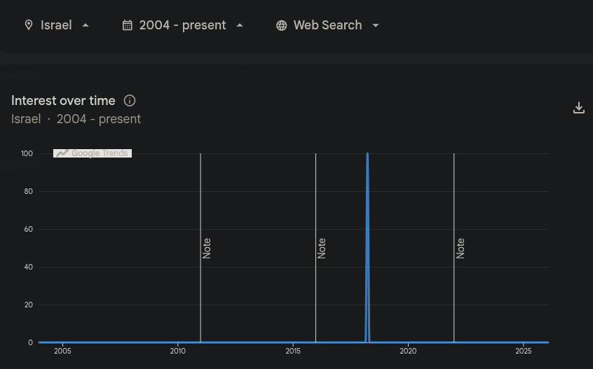>>529633823>100 searches in the past 12 monthsfrom israel? post the graph kek