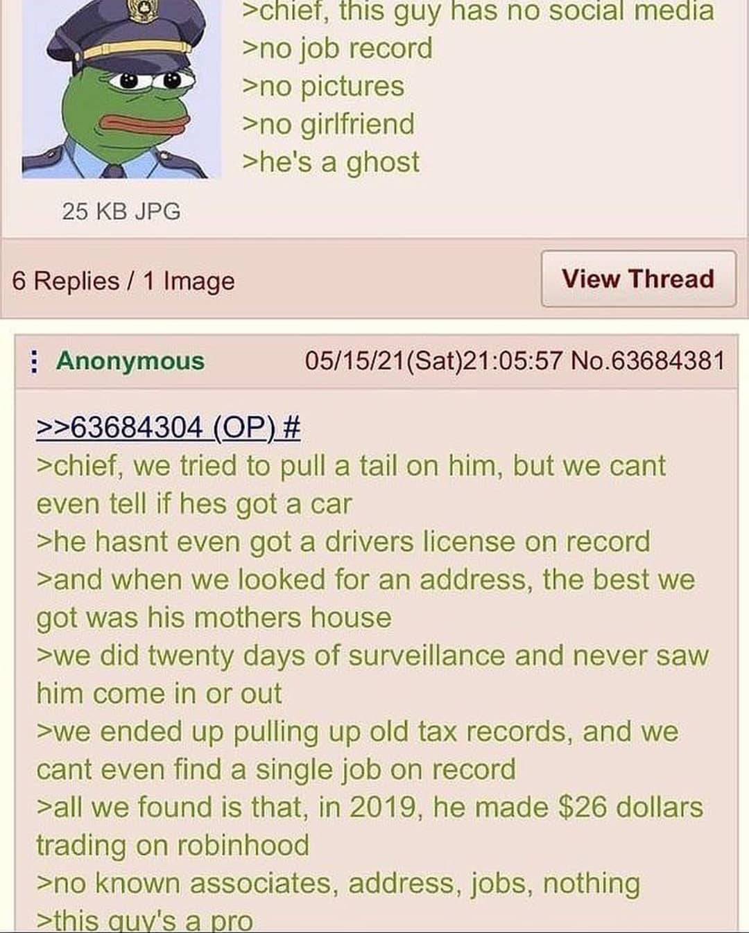 >every1 ITT>just once>not posting what was searched for because they know you'll check>"full name" obituary They've wanted me dead for years KEK. Even sicc'd the FBI on my ass. Remind them that shitposting and buying ALOT of guns isn't illegal and I have no reason to do anything because my life is awesome and my family is healthy and I hope it stays that way.