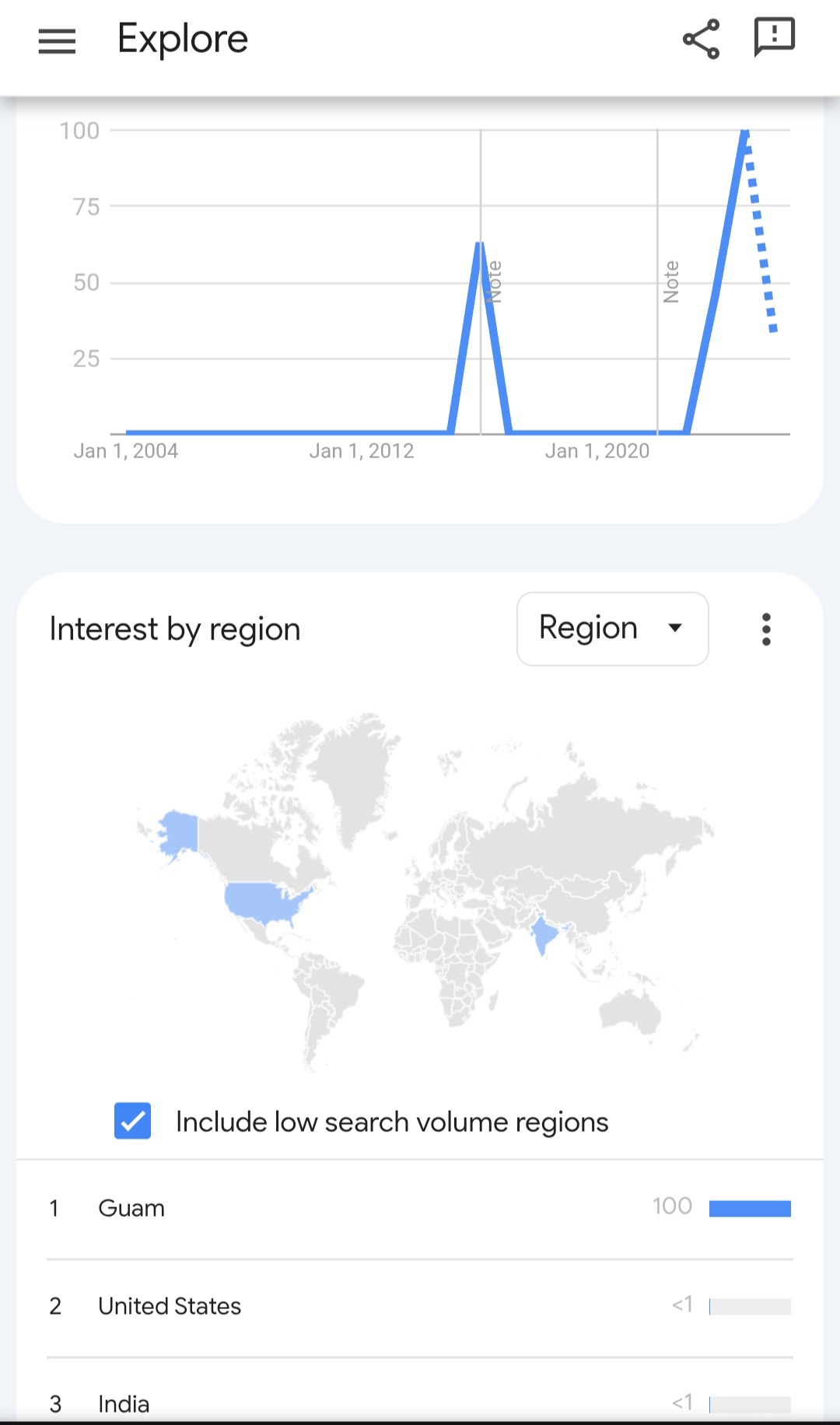 It's broken. I had 100 searches In Japan today. I searched AGAIN 2 minutes later and had a secondary spike of 100. It's fake and gay. Much like OP