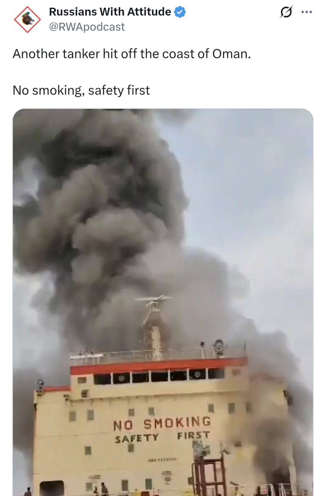 >Another tanker hit off the coast of Oman. >No smoking, safety first