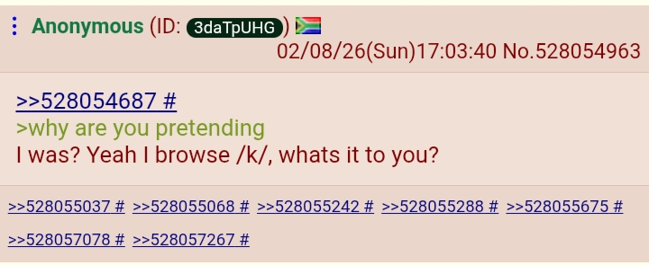 >>529641133Haven't had time to post that yet, so far just posting clips of American AD failing will net you AT LEAST a 3 day ban. They're often site-wide bans too, not just for /k/, that's how you know they're absolutely seething.