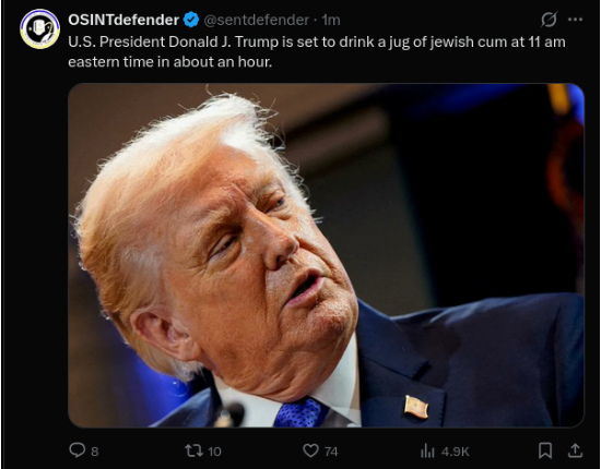 I will be surprised if Trump survives his term.The psychological toll of beleieving the ZOG supremacy theory and then fail at everything that matters, must be hard.