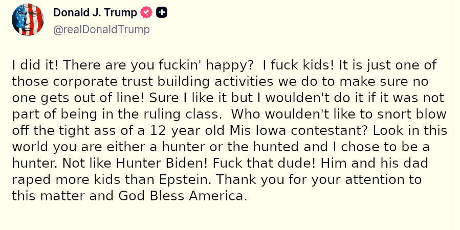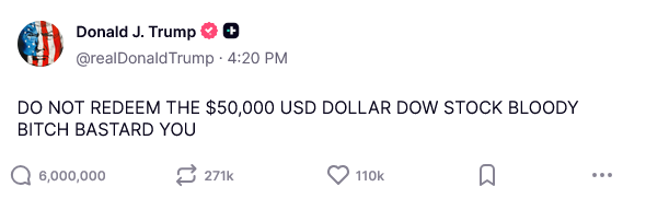 Wait a minute. I just opened TruthSocial myself and went to Trump’s page and this isn’t on it. Liar! Shame! Shame! Shame!