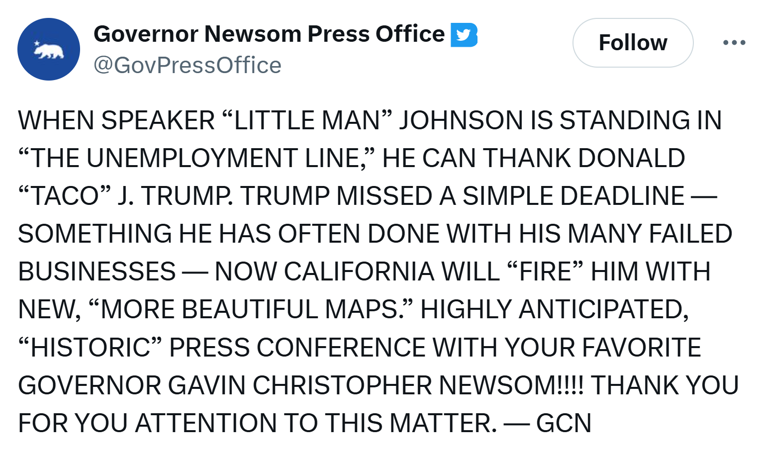 HEY DONNY T, IT’S YA BOY GAV. WANTED TO HIT YOU UP REAL QUICK BEFORE I TAKE MY BITCH OUT TO DINNER. WHERE DO YOU TAKE YOUR BITCH OUT? BURGER KING? WHAT A JOKE! SHE PROBABLY HASN’T SUCKED LIL DONNIE BOY’S DICK IN OVER A CENTURY. SAD! SPEAKING OF WHICH, DID MY BITCH JUST BLOW ME IN MY LAMBO WHILE I WAS CRUISING AT 140 ON PCH? YEAH, IT WAS CLUTCH. DJT, “DONALD JUST TRIES”. UNBELIEVABLE! DON’T BELIEVE ME? ASK MELANIA. SHE CAN’T RESIST GAVVY N “THE ALPHABET”. BECAUSE I’M ALPHA ‘N YOU CAN BET ON IT. FACE, BITCH. —GCN