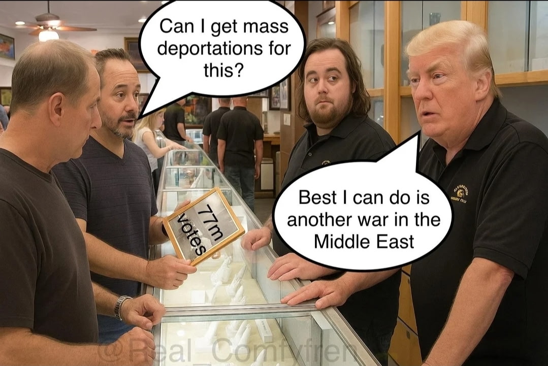 It’s crazy how the tap tap tap posters and Nick Fuentes were 100% accurate I’m starting to believe Mossad actually has CP of Trump how the fuck does he just 180 and start a new war in the Middle East when his entire identity was no moreMiddle Eastern wars?
