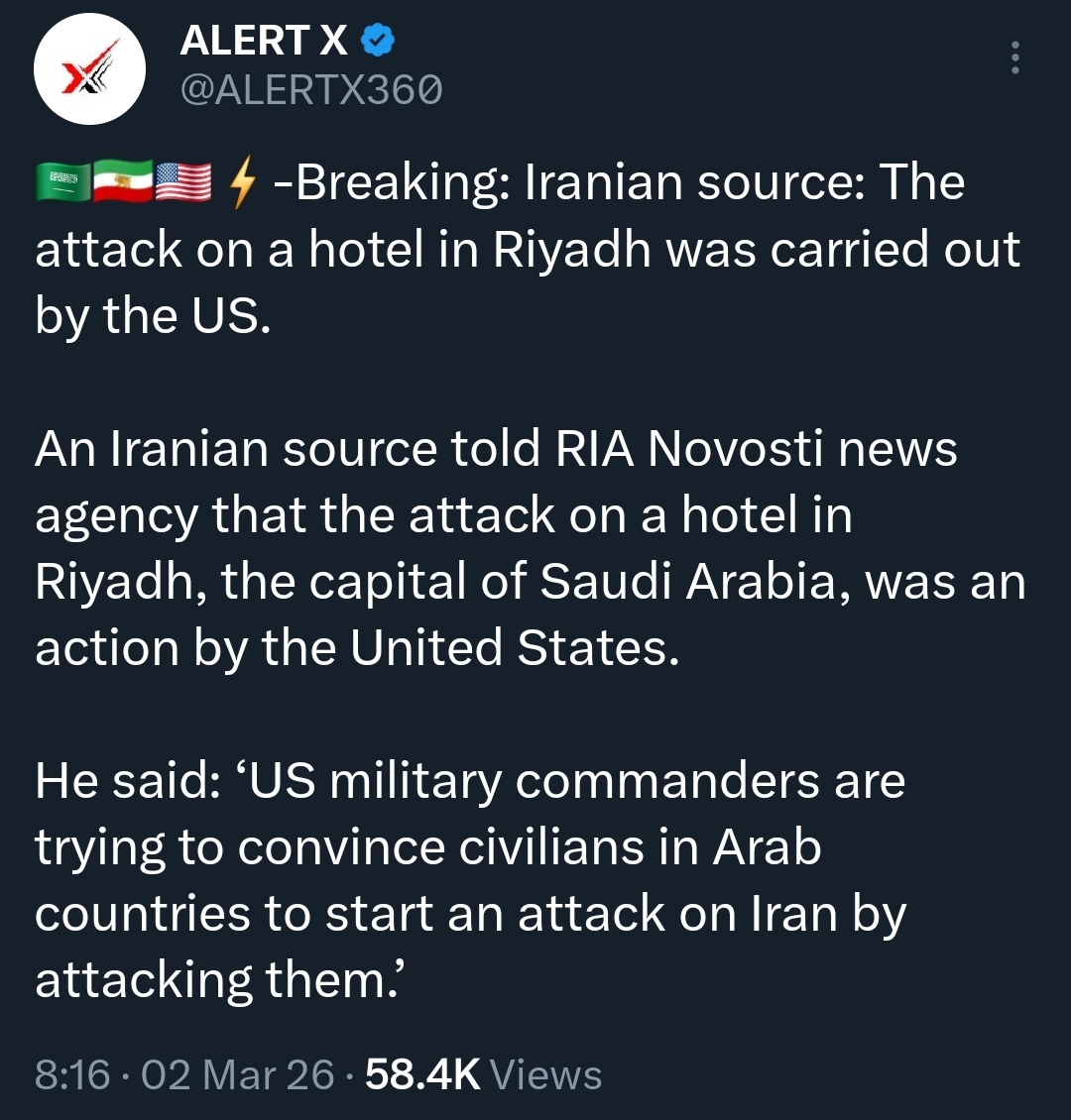 Day: 2Previous: >>529637051▶Latest▶Day 2:>Reports of a violent attack on Isfahan nuclear facility >QatarEnergy, accounting for 20% of global LNG trade, stops all production after attacks on its facilities >IDF says Iran is moving from isolated launches to larger missile barrages>Iran strikes Saudi oil infrastructure, including ARAMCO Ras Tanura facility — one of the world’s largest oil export hubs>3 x U.S. F-15E fighter jets were shot down over Kuwait in a friendly fire incident, all crew members ejected safely and are in stable condition - CENTCOM>Iranian drones strike U.K.'s airbase RAF Aktoriri in Cyprus>De-facto Iranian leader Ali Larijani says: "We will not negotiate with the United States">Hezbollah joins the war, Israel retaliates with airstrikes on Beirut; does not rule out invasion▶Livestreamshttps://www.youtube.com/watch?v=4E-iFtUM2kkhttps://www.youtube.com/watch?v=JHwwZRH2wz8▶Telegramhttps://rentry.org/tgnews▶Twitter accounts (using proxy frontend because twitter's UI is trash):https://nitter.net/clashreporthttps://nitter.net/FaytuksNetworkhttps://nitter.net/sentdefender▶Israel Rocket Alertshttps://www.tzevaadom.co.il/en/▶Air Traffichttps://www.flightradar24.com/https://flightaware.com/livehttps://globe.adsbexchange.com▶Maritime Traffichttps://www.marinetraffic.com/https://www.vesselfinder.com/