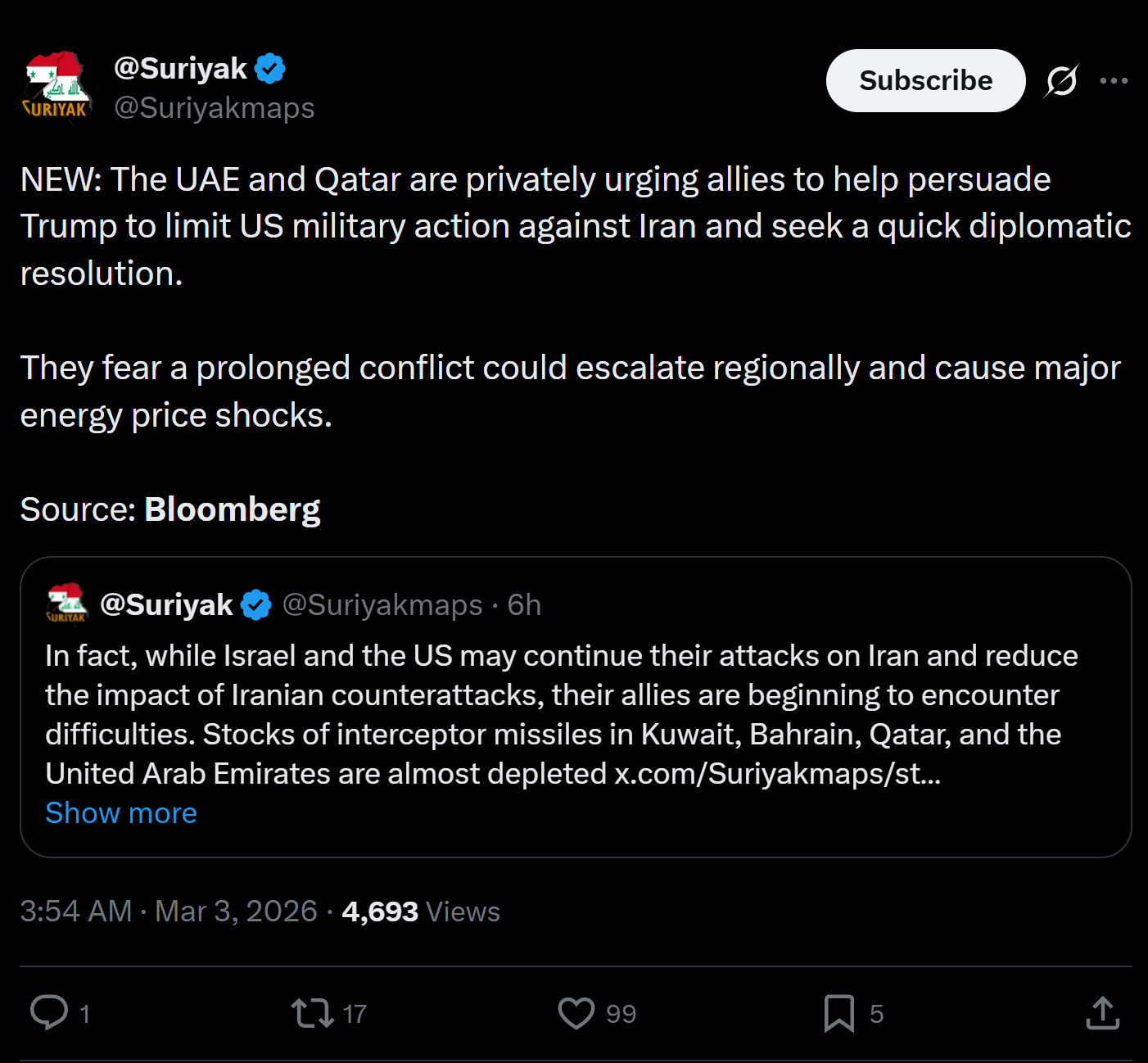 They know the gulf countries are 100% dead even if by an unholy miracle jewsa manages to destabilize Iran and "win" this mess. There is no tourism or trade in a country that borders a destabilized country and that's IF by an unholy miracle they win. If Iran wins then they would be under defacto control of Iran and that means no more hohol whores, no more 200 milloon shekels gold plated cars and specially no more kike money