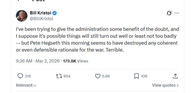 Even hardcore Zionist neocon Bill Kristol thinks this is fucked