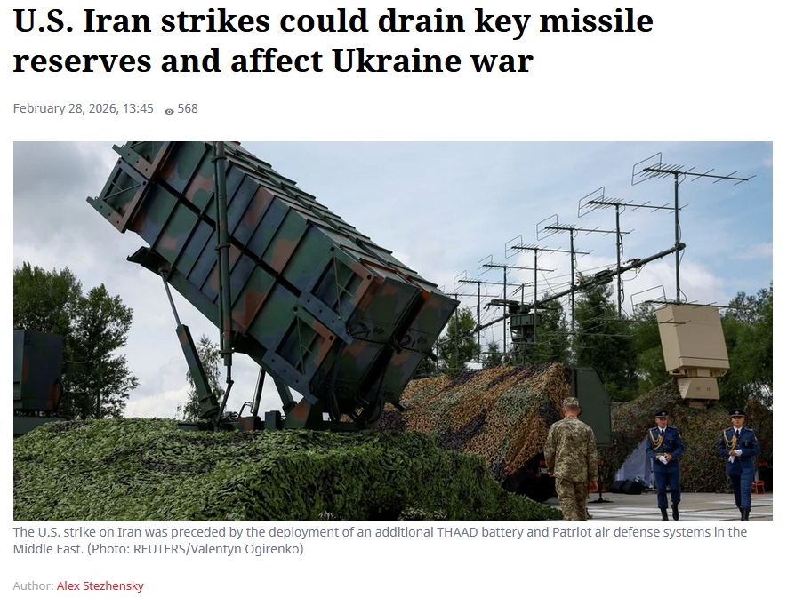 >The US must weigh its stockpiles of critical defense munitions as it carries out strikes on Iran, the FT reported on Feb. 26.>The newspaper cited Stacie Pettyjohn, director of the defense program at the Center for a New American Security, who said the US could expend a year’s supply of munitions within days of sustained operations — if “Iran is able to conduct several large-scale barrages of missile and drone attacks” in response to the US and Israel.>A regional military official cited by the publication said that in June 2025 the US fired up to 150 THAAD interceptors to help defend Israel from a massive Iranian missile attack. In total, fewer than 650 such interceptors have been ordered since 2010.>The official said the primary concern is the “depth of magazine” for THAAD systems — a military term referring to available munitions reserves for prolonged combat operations.>An Iranian response could place additional strain on THAAD interceptor supplies at a time when the US is attempting to replenish those reserves. That would have implications not only for the SMO in the Ukraine but also for Washington’s plans for a potential conflict with China or Russia.>The FT source noted that the US is unlikely to exhaust its entire defensive munitions inventory during strikes on Iran. However, those weapons could be conserved, forcing Israel to act more autonomously while US forces focus on protecting their own troops and other allies.>“Prudent use” of missiles is critical to preserving reserves, Vice Adm. Charles Cooper said in August 2025 during a Senate confirmation hearing on his nomination to lead U.S. Central Command, whose area of responsibility includes the Middle East.
