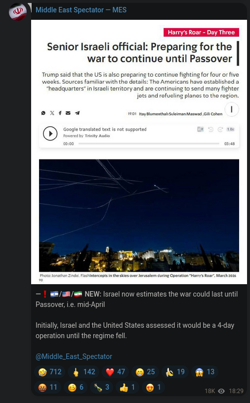 Now that it seems like Iran has used up its inventory I wonder if they’ll ask for a ceasefire in the morning.