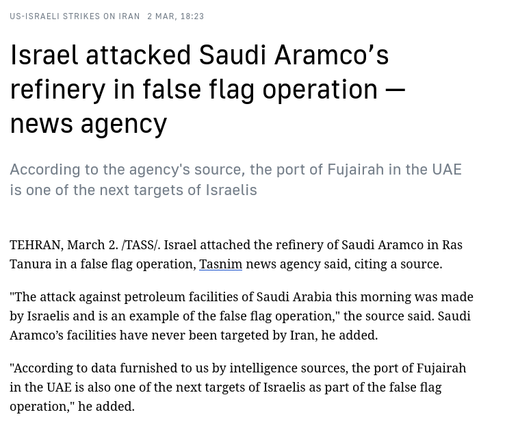 >>529666973Finally with the new thread.israel bombed the Saudi Arabian oil refineries trying to false flag Iran.Pass it on.https://tass.com/world/2095095