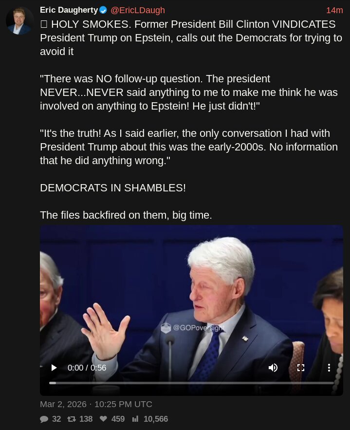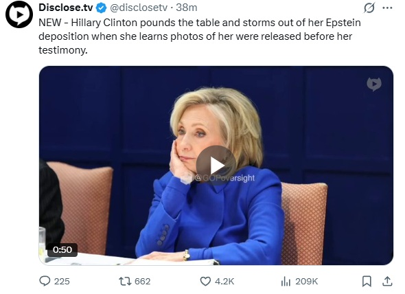 >>529684796https://www.politico.com/live-updates/2026/02/26/congress/hillary-clinton-deposition-briefly-derailed-00801395