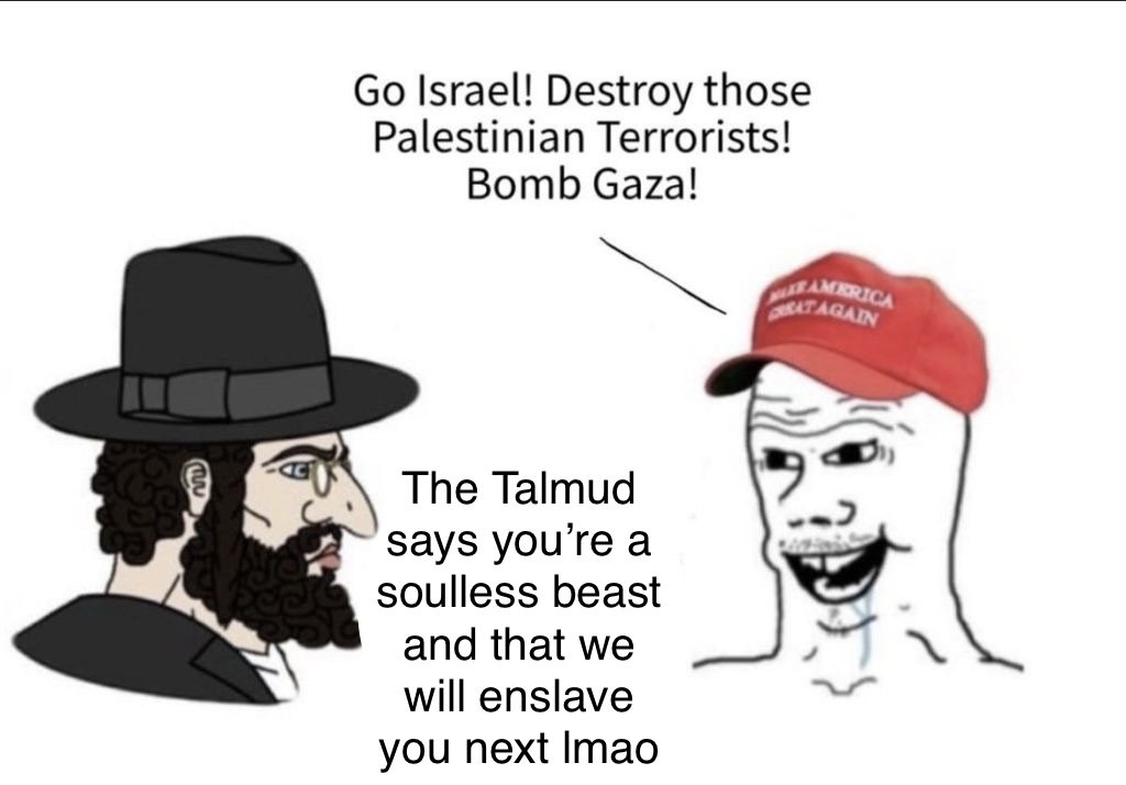 >Die for Israel>Only Israel benefits from war with Iran>Ignore how Iran constantly chants “Death to America” and views us as the “big satan”>Ignore how Iran directly or indirectly has killed Americans in the past>Ignore how Iran funds terrorists who kill Americans both home through open borders and abroad>Ignore how Israelites are also sacrificing themselves by taking the brunt of casualties so far>IGNORE THAT THE OTHER NEIGHBORING COUNTRIES BENEFIT FROM IRAN BEING BEATEN>NONE OF THAT MATTERS>ONLY ISRAEL AND ISRAEL ALONE BENEFITS>YOU CAN’T HAVE US AND NUMEROUS OTHER NATIONS BENEFIT FROM TAKING DOWN ONE OF RUSSIA’S AND CHINA’S ALLIES AND SUPPLIERS>ITS ONLY FOR THE JEWS AND ALWAYS FOR THE JEWS>NO ONE ELSE CAN POSSIBLY BENEFIT FROM THIS>IF YOU THINK THAT YOU’RE A MOSSAD AGENTDo they unironically believe this?