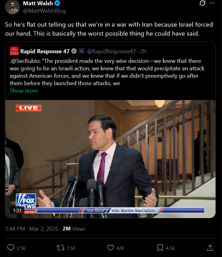 RUBIO ADMITS WE ACTED ONLY BECAUSE BIBI WAS GOING IN UNILATERALLY https://www.c-span.org/program/news-conference/secretary-of-state-rubio-speaks-to-reporters/674484