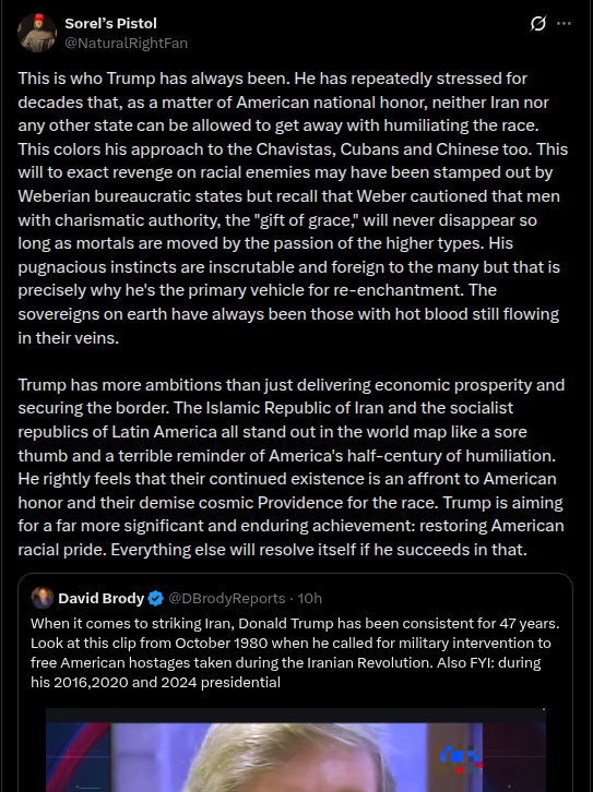 I'm getting annoyed at the panicans on X still shilling for Iran. How can they keep pretending they aren't getting beyond BTFO. They have moved to extrapolate that this war (couple drones and missiles getting through) confirmed that the US doesn't have the means to defeat a chinese invasion of Taiwan...