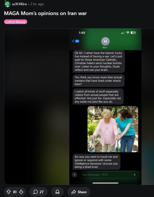 >>529690128imagine publicly shitting on your own mother for reddit points kek