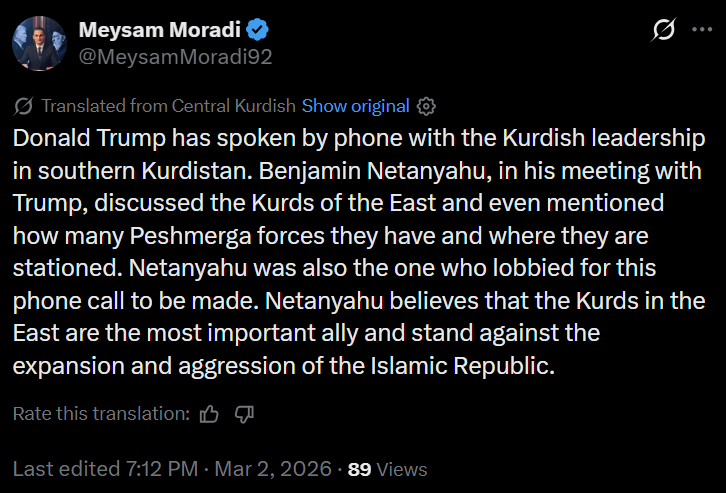 Day: 3Previous: >>529685741▶Latest▶Day 3:>Al-Manar bombed>Al-Manar stops regular broadcasting and switches to reciting the Quran >IDF bombs IRIB▶Day 2:>IDF issues evacuation orders to southern Lebanon, Al Manar in Beirut and IRIB in Teheran>IRGC says that the Strait of Hormuz has been closed and that Iran will set fire to any ship trying to pass>Qatar downed 2 Iranian Su-24 aircraft, the Qatari Defense Ministry says>QatarEnergy, accounting for 20% of global LNG trade, stops all production after attacks on its facilities >IDF says Iran is moving from isolated launches to larger missile barrages>Iran strikes Saudi oil infrastructure, including ARAMCO Ras Tanura facility — one of the world’s largest oil export hubs>3 x U.S. F-15E fighter jets were shot down over Kuwait in a friendly fire incident, all crew members ejected safely and are in stable condition - CENTCOM>Iranian drones strike U.K.'s airbase RAF Aktoriri in Cyprus>De-facto Iranian leader Ali Larijani says: "We will not negotiate with the United States">Hezbollah joins the war, Israel retaliates with airstrikes on Beirut; does not rule out invasion▶Livestreamshttps://www.youtube.com/watch?v=4E-iFtUM2kkhttps://www.youtube.com/watch?v=JHwwZRH2wz8▶Telegramhttps://rentry.org/tgnews▶Twitter accounts (using proxy frontend because twitter's UI is trash):https://nitter.net/clashreporthttps://nitter.net/FaytuksNetworkhttps://nitter.net/sentdefender▶Israel Rocket Alertshttps://www.tzevaadom.co.il/en/▶Air Traffichttps://www.flightradar24.com/https://flightaware.com/livehttps://globe.adsbexchange.com▶Maritime Traffichttps://www.marinetraffic.com/https://www.vesselfinder.com/