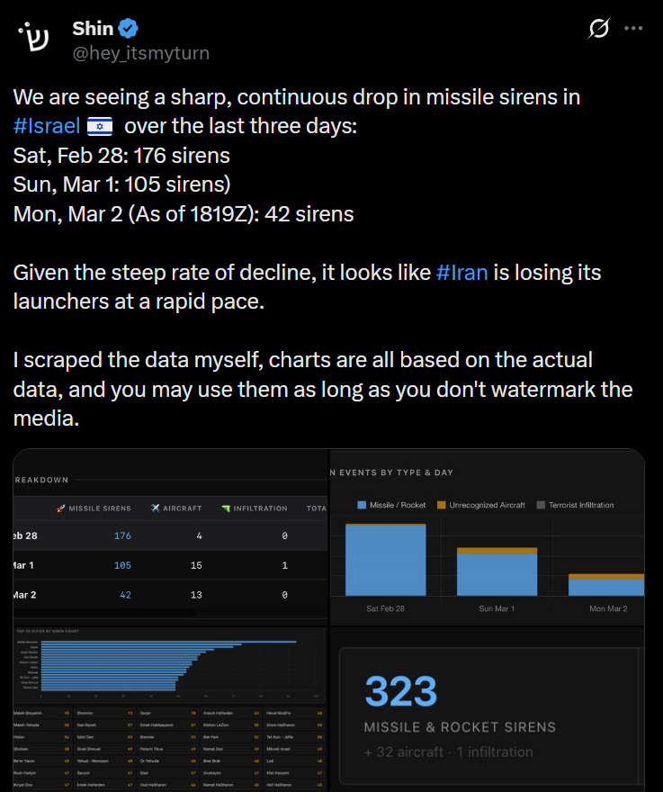 Missile Alerts per day, falling off fast no?