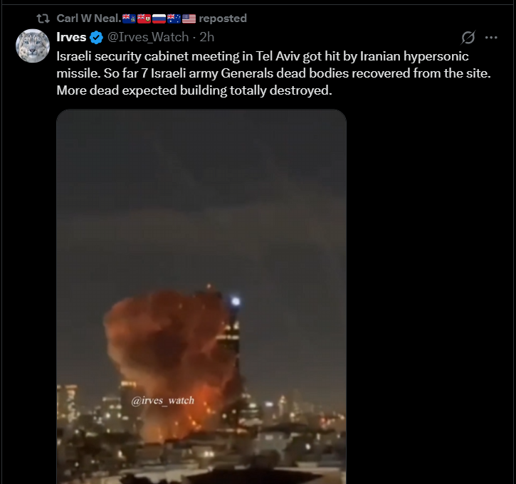>Iran struck Netanyahu's office this morning, his fate remains unknown, according to the IRGC.