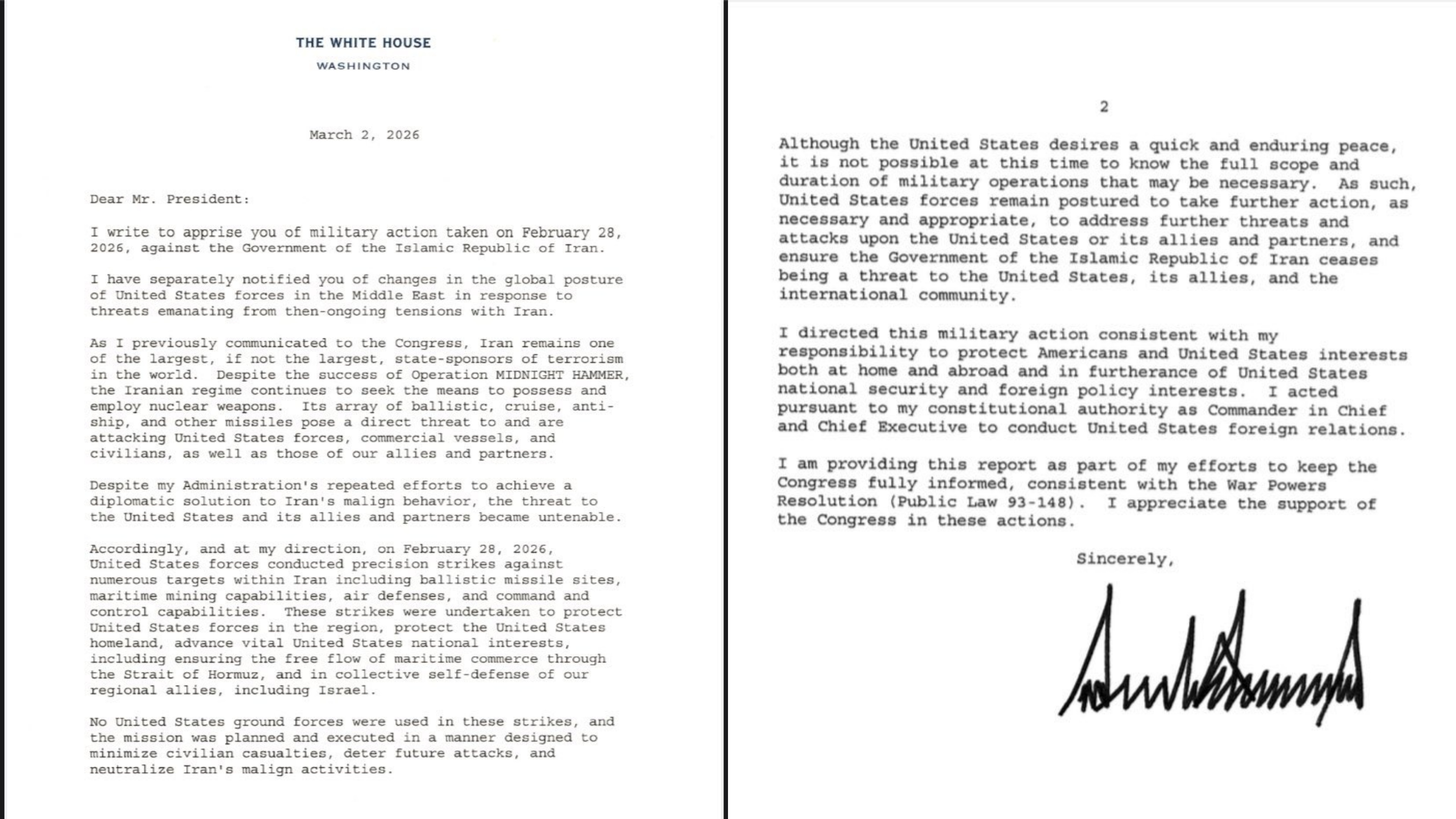 >The White House has informed Congress that “it is not possible at this time to know the full scope and duration of military operations that may be necessary.”