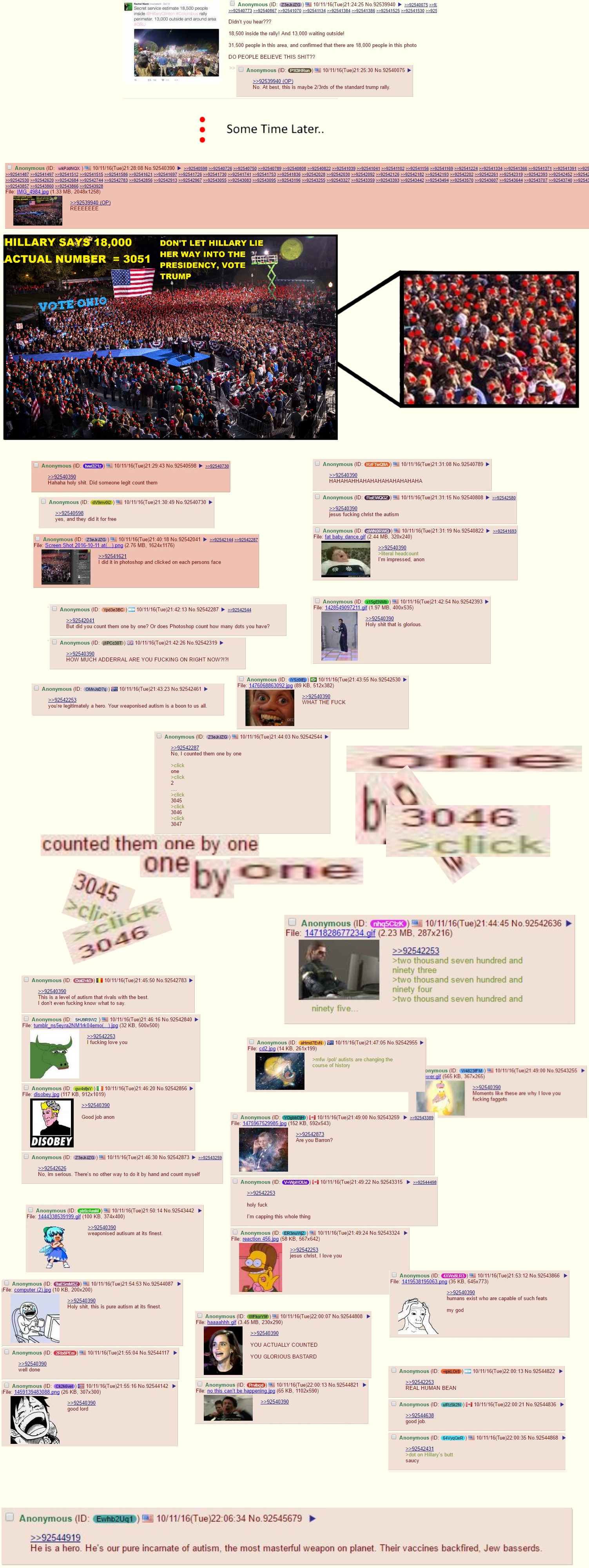 >>529717233>I said I talked to one.Where did this happen? Where did he walk through? Since you care about America so much, why did you not report him to border patrol? Why did you save this little nugget and rush to /pol/ to shout "d-drumpf failed at the border!!" Is that really how it happened? Paco walked up to you and said "Heh heh America is so weak, you should go tell the white people who support him to elect brown communists instead because america is le jews. Be sure to tell them that!". I'm very sure.