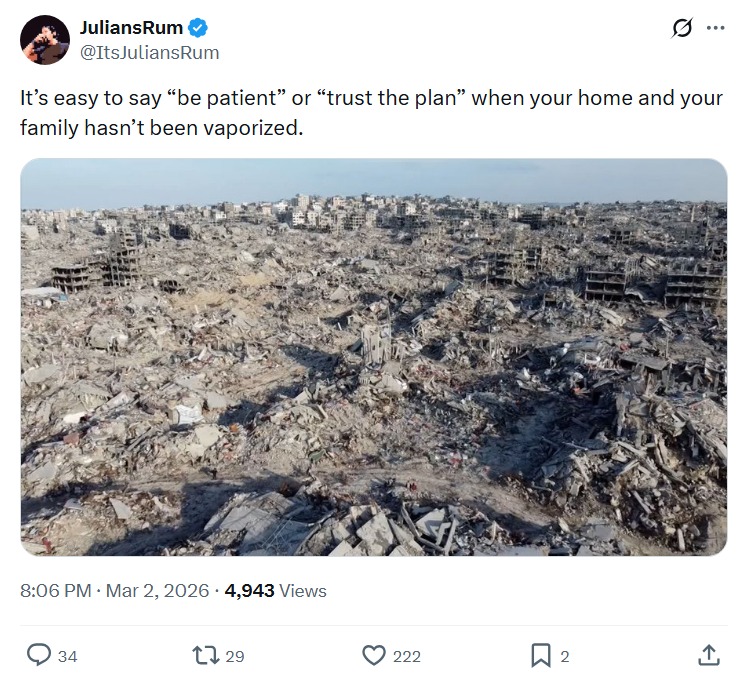I think it's utterly hilarious that perhaps in some attempt to divide the right all that has been accomplished by social engineers is to lay bare the perfidy and utter uselessness of the extreme Israel obsessed, isolationist position.The very definition of hoisted by their own petard.It's classic and a tale as old as time. Tucker (best friend of the Biden clan) has proven himself to be a double agent, and someone interested in the status quo. Not someone who wants a lessening of the power of the elite, which is a direct consequence of the detente that will occur post reconciliation in the MideastThe sectarian violence was always their Damocles sword