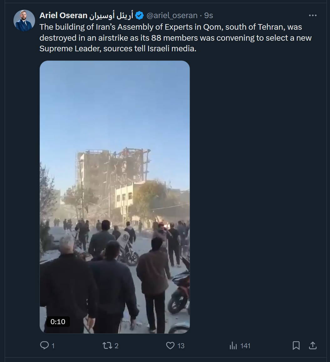 >Iranian Parliament building has been targeted by U.S.-Israeli airstrikes