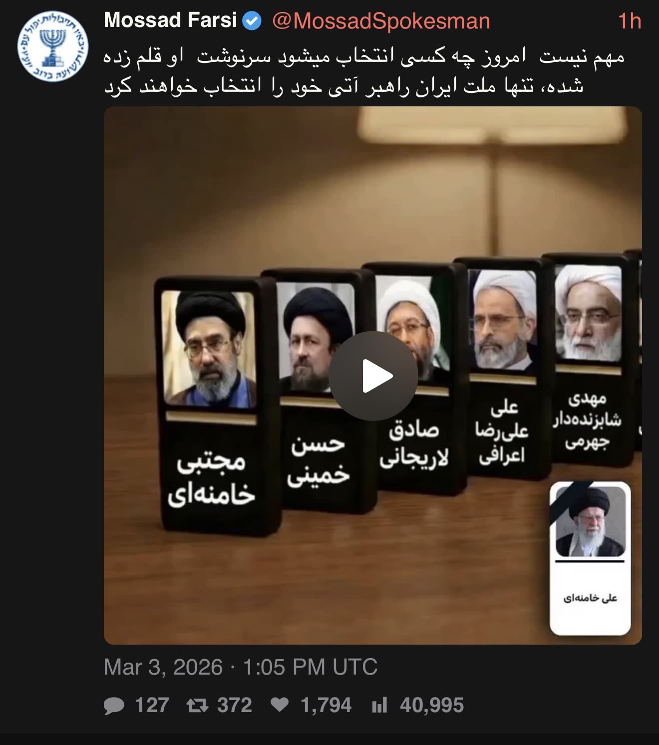 >Iran's Supreme Leader Ayatollah Ali Khamenei has been killed