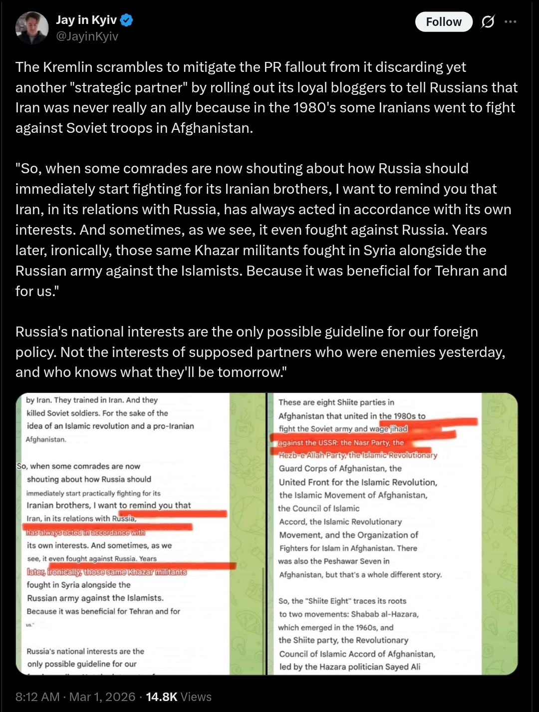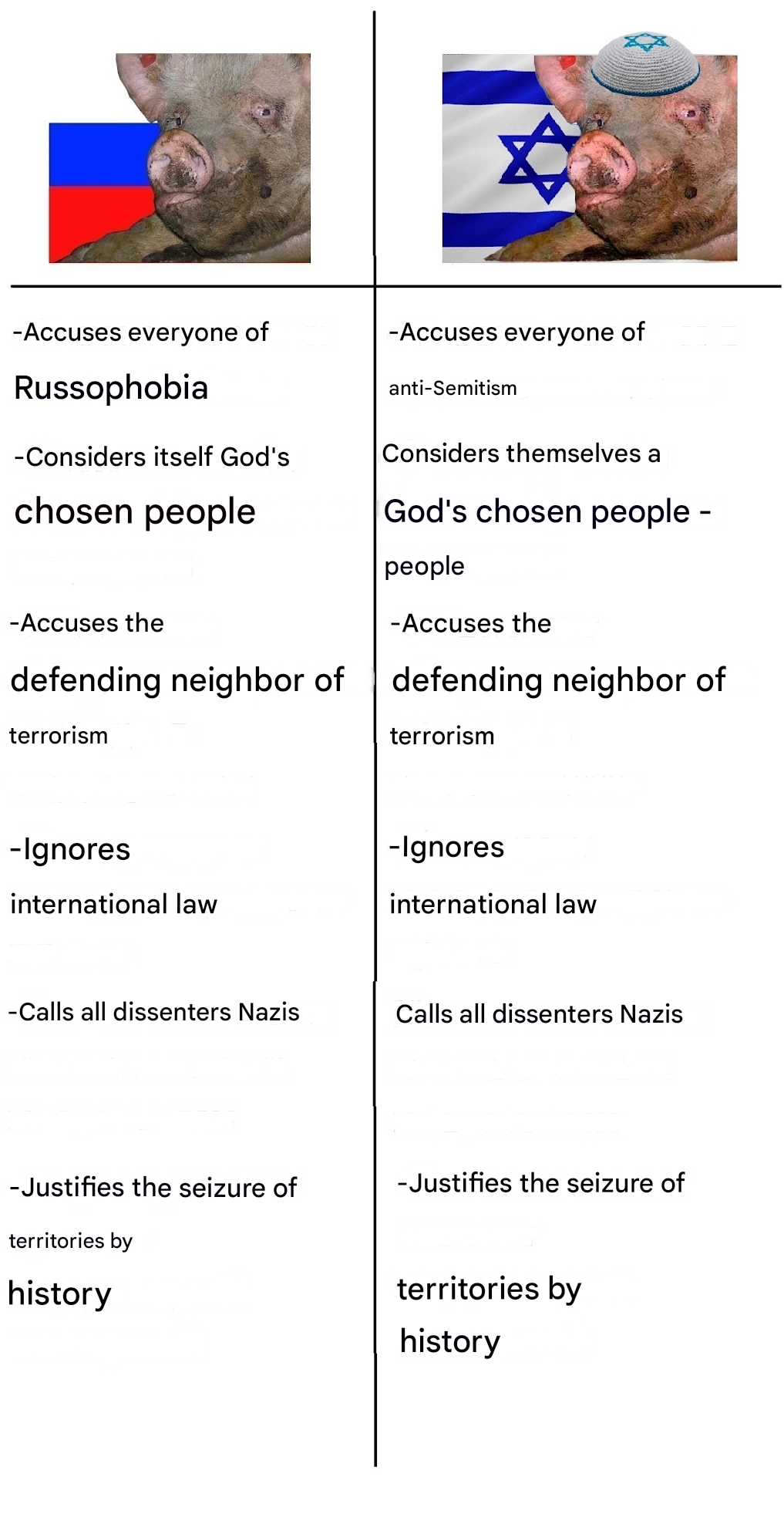 to be fair, Iran is a much more capable and dangerous opponent than Russia. they have quite a lot of people which are even more fanatical than your average zigger. burgers and Israel will definitely win long term because of the technology edge but it will be costlyanyway, if monke thinks that his 147m (144 now) country can win against 980m then he is absolutely delusional